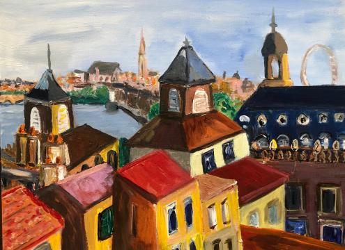 Pierre Auguste-RenoirRien n’est plus agréable chez un artiste que la fraîcheur, et la peinture de Véronique Françaix montre d’abord cette qualité. Véronique aime les couleurs, elle aime les images, elle aime les vues de ville, les maisons, les toits, les monuments, les cimetières, les arbres, elle aime les personnages, elle aime même les tigres. Elle donne l’impression de peindre sans se poser de questions et pourtant, dès qu’on sait de quoi elle est partie, image-souvenir, photographie, et qu’on mesure son apport, on comprend que cette fraîcheur n’a rien à voir avec la facilité, mais tout avec le tempérament : une certaine façon de simplifier les perceptions, de bousculer l’optique, de redistribuer les formes, de redonner vie à notre petit monde qui en a bien besoin.