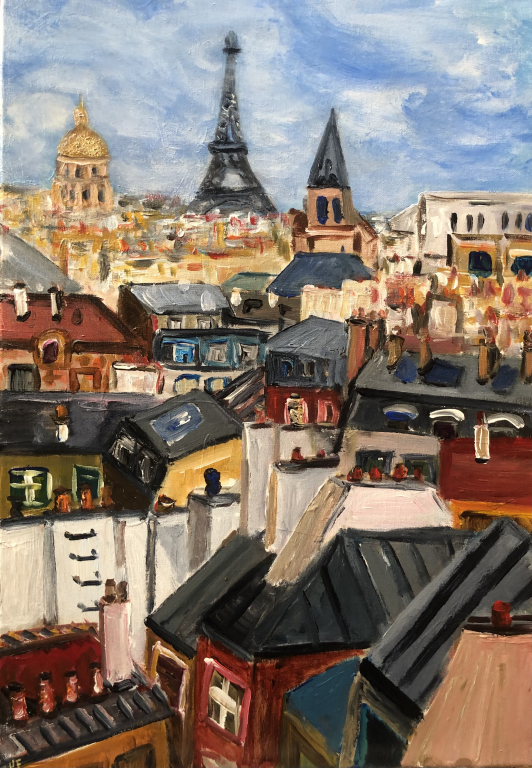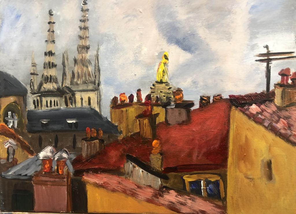 Pierre Auguste-RenoirRien n’est plus agréable chez un artiste que la fraîcheur, et la peinture de Véronique Françaix montre d’abord cette qualité. Véronique aime les couleurs, elle aime les images, elle aime les vues de ville, les maisons, les toits, les monuments, les cimetières, les arbres, elle aime les personnages, elle aime même les tigres. Elle donne l’impression de peindre sans se poser de questions et pourtant, dès qu’on sait de quoi elle est partie, image-souvenir, photographie, et qu’on mesure son apport, on comprend que cette fraîcheur n’a rien à voir avec la facilité, mais tout avec le tempérament : une certaine façon de simplifier les perceptions, de bousculer l’optique, de redistribuer les formes, de redonner vie à notre petit monde qui en a bien besoin.