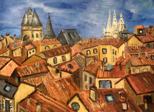 Pierre Auguste-RenoirRien n’est plus agréable chez un artiste que la fraîcheur, et la peinture de Véronique Françaix montre d’abord cette qualité. Véronique aime les couleurs, elle aime les images, elle aime les vues de ville, les maisons, les toits, les monuments, les cimetières, les arbres, elle aime les personnages, elle aime même les tigres. Elle donne l’impression de peindre sans se poser de questions et pourtant, dès qu’on sait de quoi elle est partie, image-souvenir, photographie, et qu’on mesure son apport, on comprend que cette fraîcheur n’a rien à voir avec la facilité, mais tout avec le tempérament : une certaine façon de simplifier les perceptions, de bousculer l’optique, de redistribuer les formes, de redonner vie à notre petit monde qui en a bien besoin.